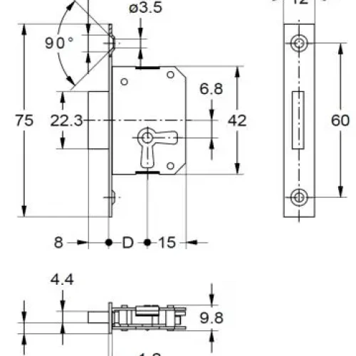Uputatav lukk mööbliesemetele - kapiustele (parem v vasak), sahtlitele . Messingist lukuplaadi mõõtmed 12x75x1mm, lukukorpuse mõõtmed 48x42x8mm. Võtmetihvti tsentri kaugus lukuplaadist 35mm. Lukk on kasutatav mõlemakäelisena, käelisust muudetakse korpusele kinnitatud tihvtiklambri tõstmisega teisele küljele. Lukk on komplektis võtmega (kujundus võib erineda!).